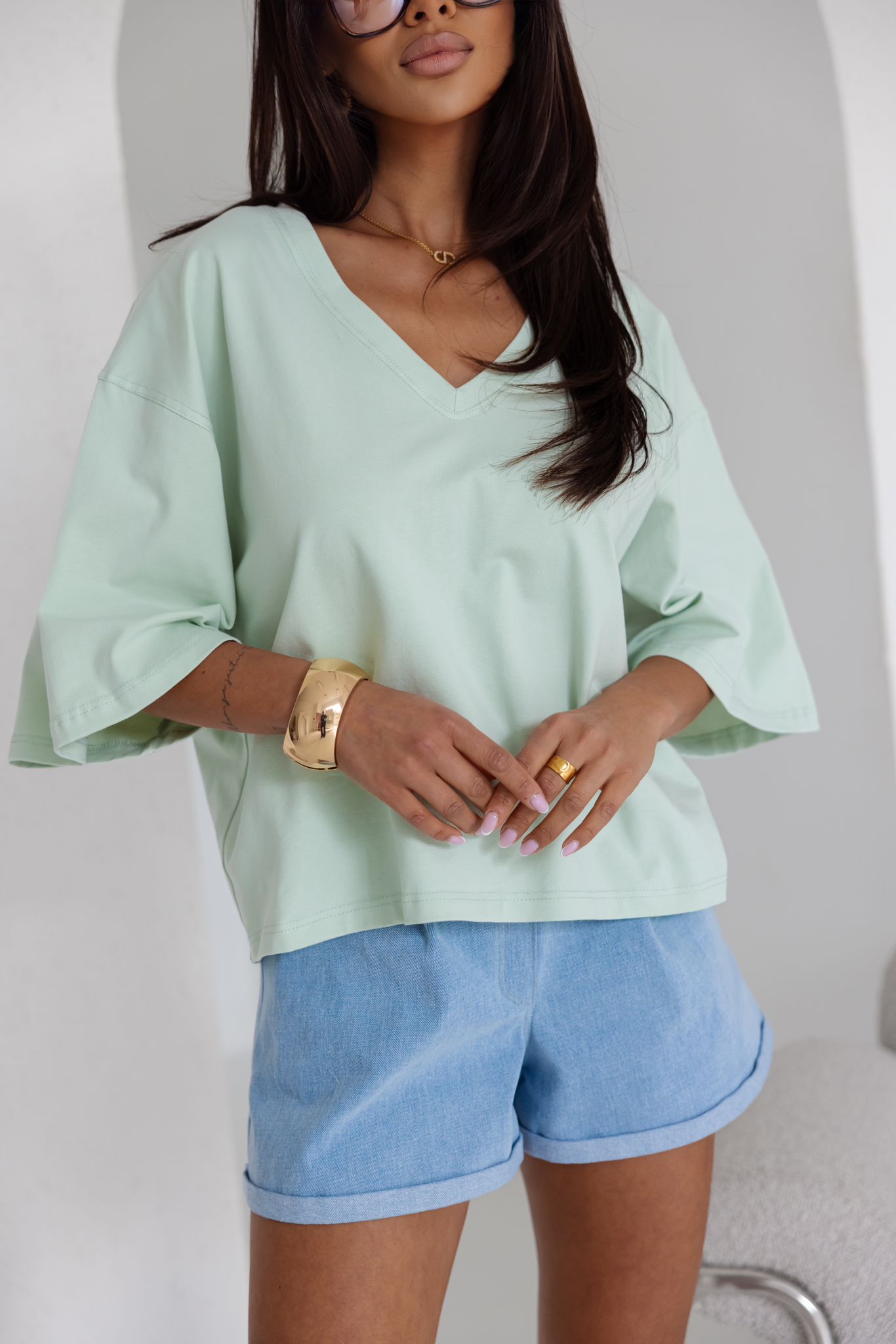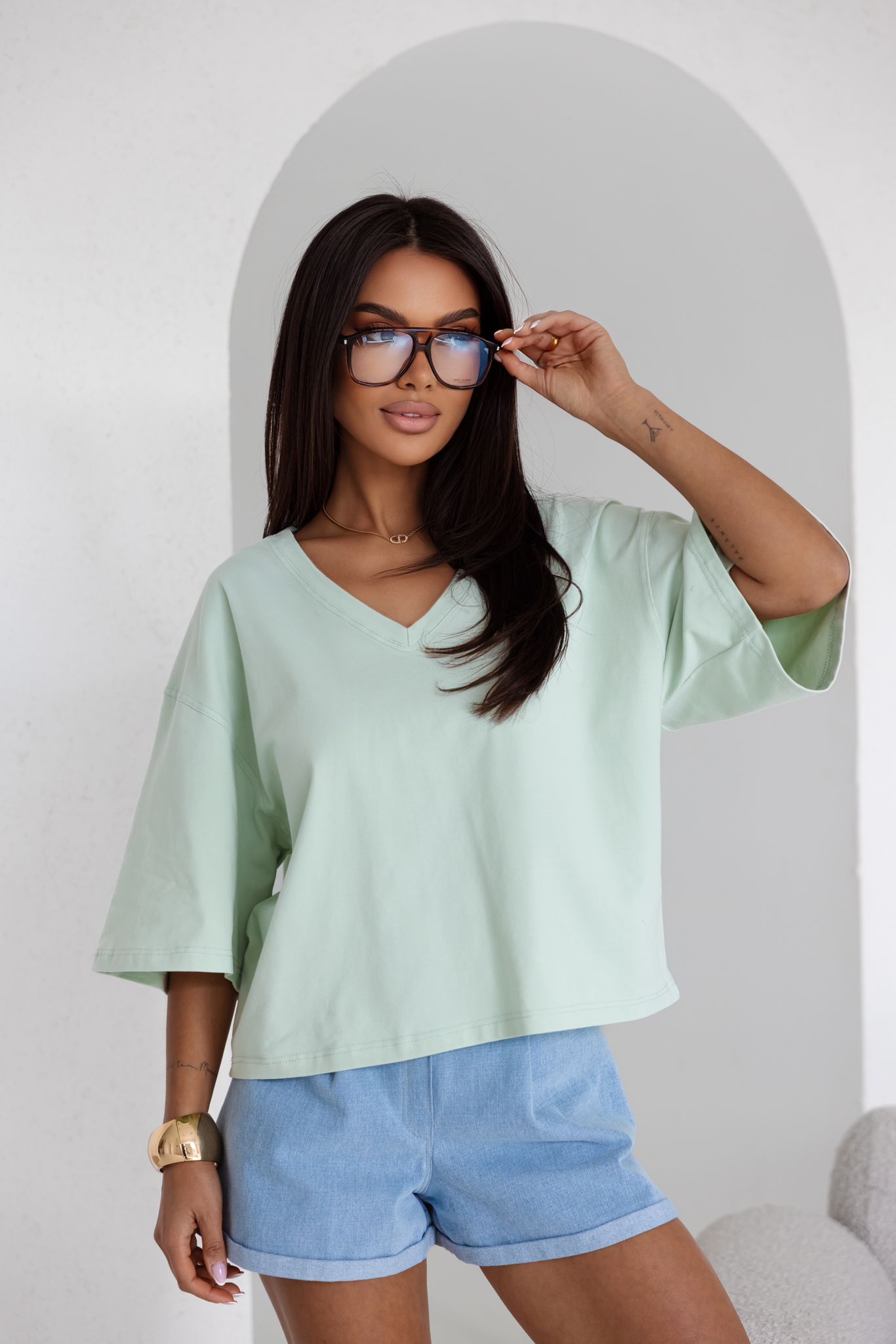 Klasyczny oversize’owy T-shirt z szerokim rękawkiem – wystarczy dodać jeansy, szorty i jesteś gotowa. Rozmiar: Biust: 60-70x2 Pas:58-70x2 Długość: 58cm …