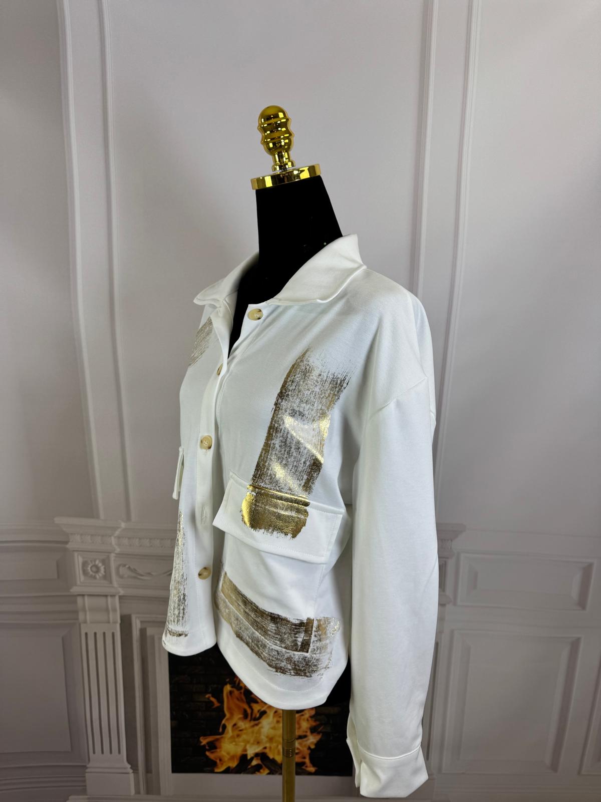 Katana/koszula zapinana na guziczki, z przodu dwie kieszonki, złoty efektowny print .Przód krótszy, tył dłuższy.