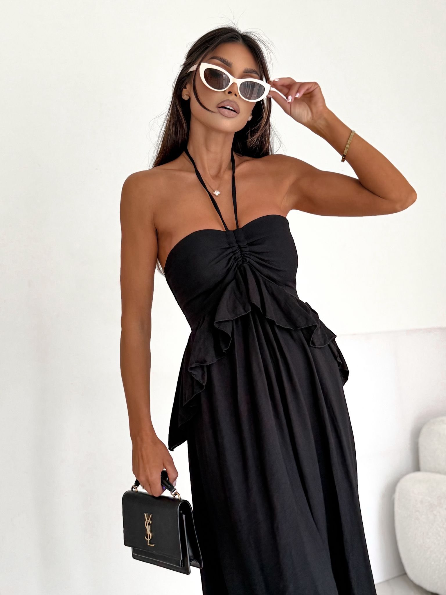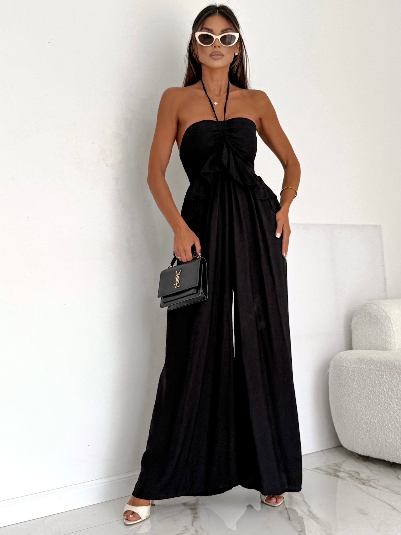 BLACK FLOW Elegancki czarny kombinezon o ponadczasowym kroju, który podkreśla sylwetkę i nadaje stylizacji nowoczesnego charakteru. Idealny na wyjątkowe okazje i wieczorne wyjścia. Rozmiar: Biust:40-50x2 Pas: 55x2 …