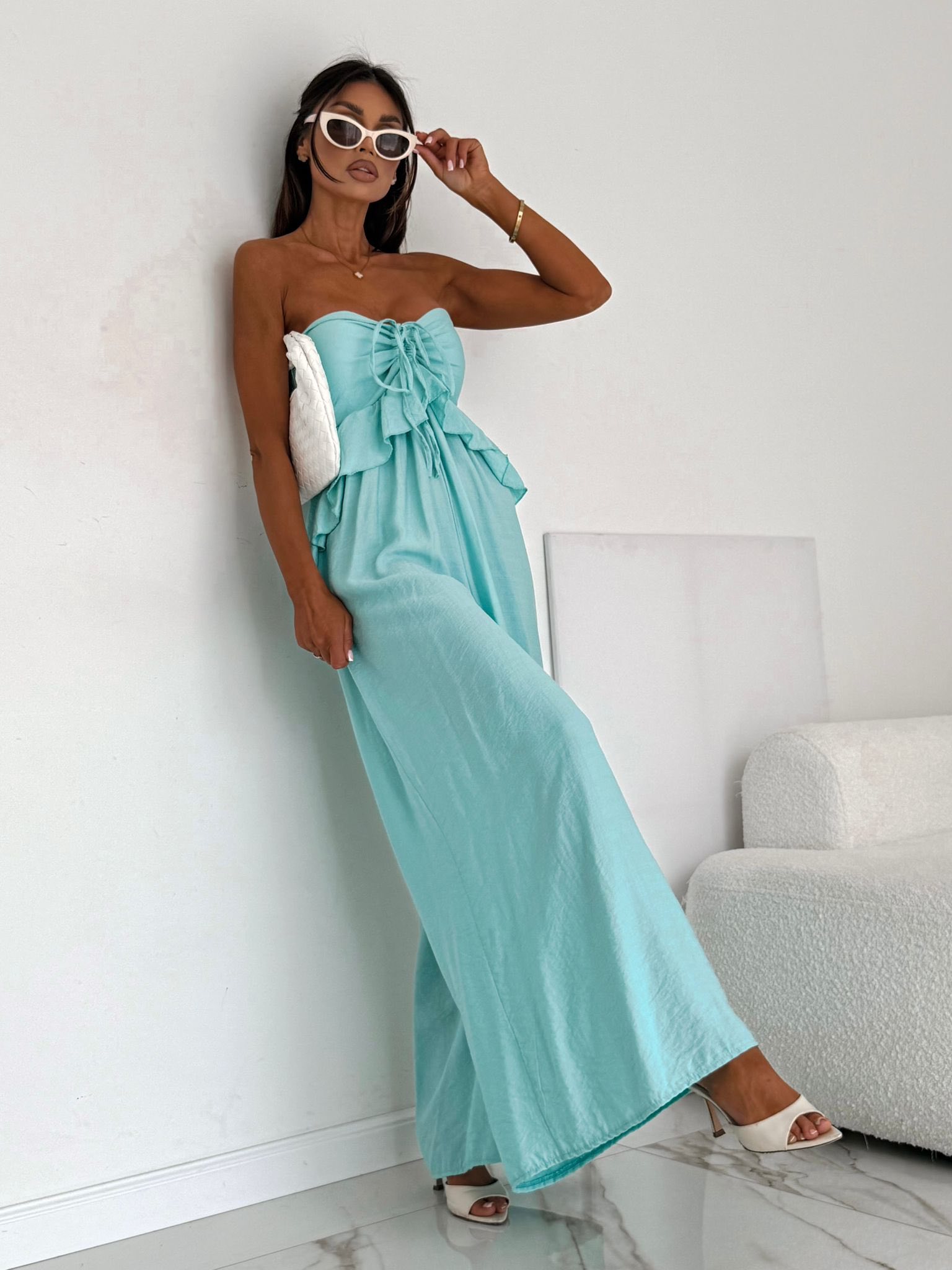 MINT FLOW Zwiewny kombinezon o lekkim fasonie, który zachwyca subtelnym miętowym kolorem i kobiecym wykończeniem. Szerokie nogawki oraz delikatne marszczenie przy dekolcie tworzą wyjątkowo elegancką stylizację. …