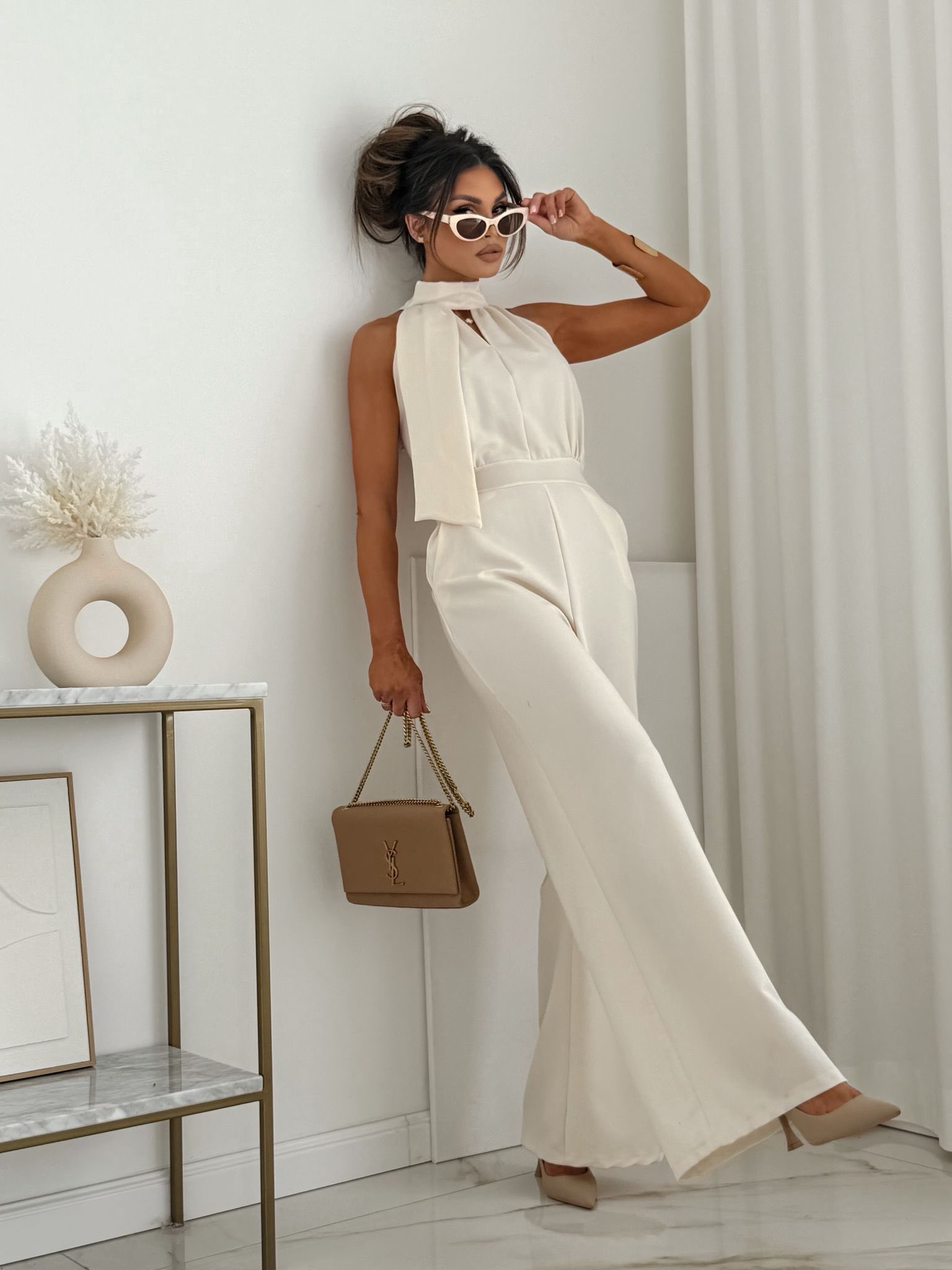 Kombinezon Elegance Chic – ecru Klasyczny kombinezon w kolorze ecru Elegancki, minimalistyczny model idealny na wyjątkowe okazje. Szerokie nogawki optycznie wydłużają sylwetkę, a gumka w talii zapewnia komfort noszenia. …