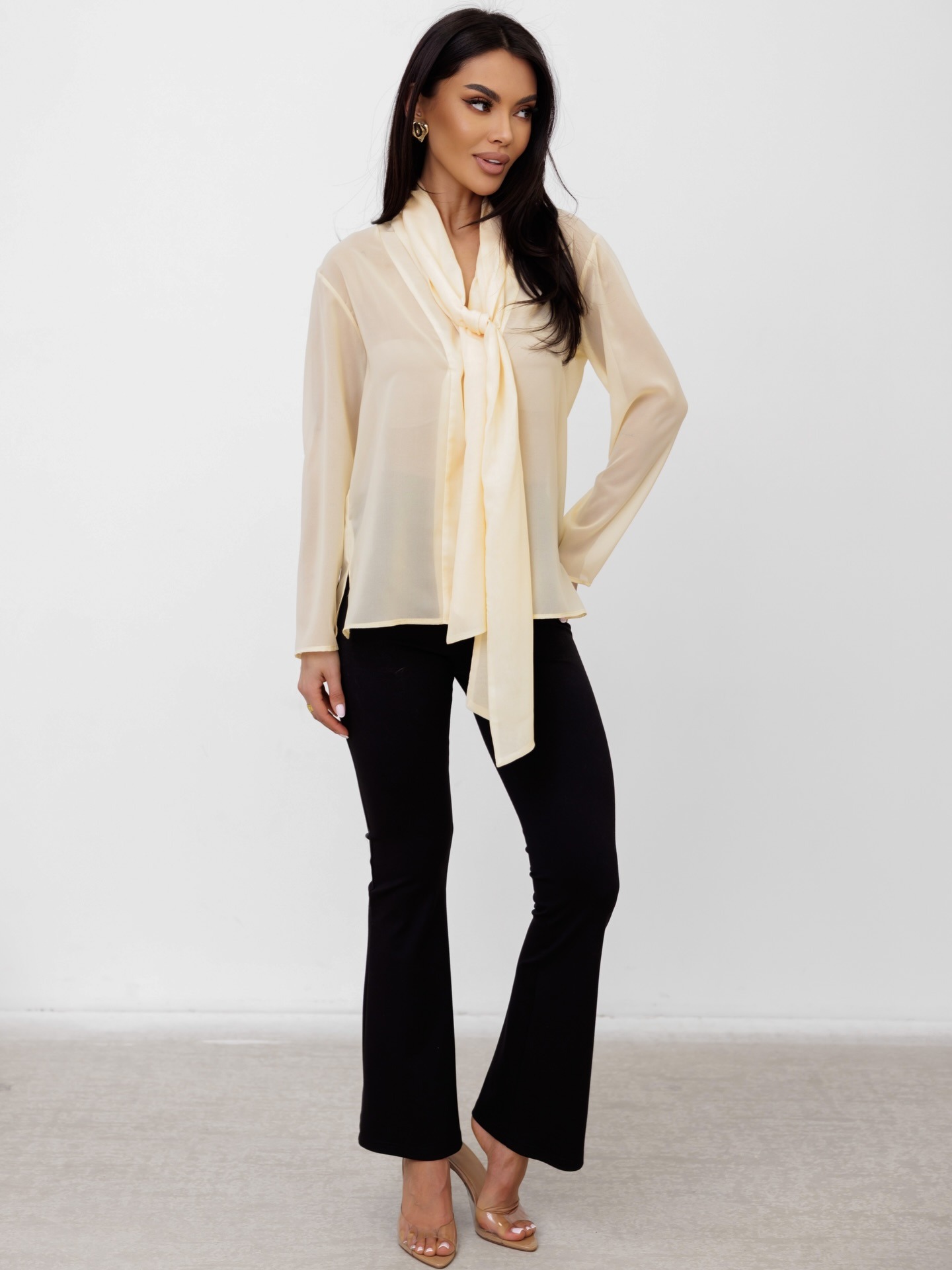 Klasyka w nowoczesnym wydaniu w żółtym odcieniu. Koszula z lekkiej, przyjemnej w dotyku tkaniny pięknie układa się na sylwetce i dodaje stylizacji elegancji. Wiązanie przy szyi nadaje jej wyjątkowego …