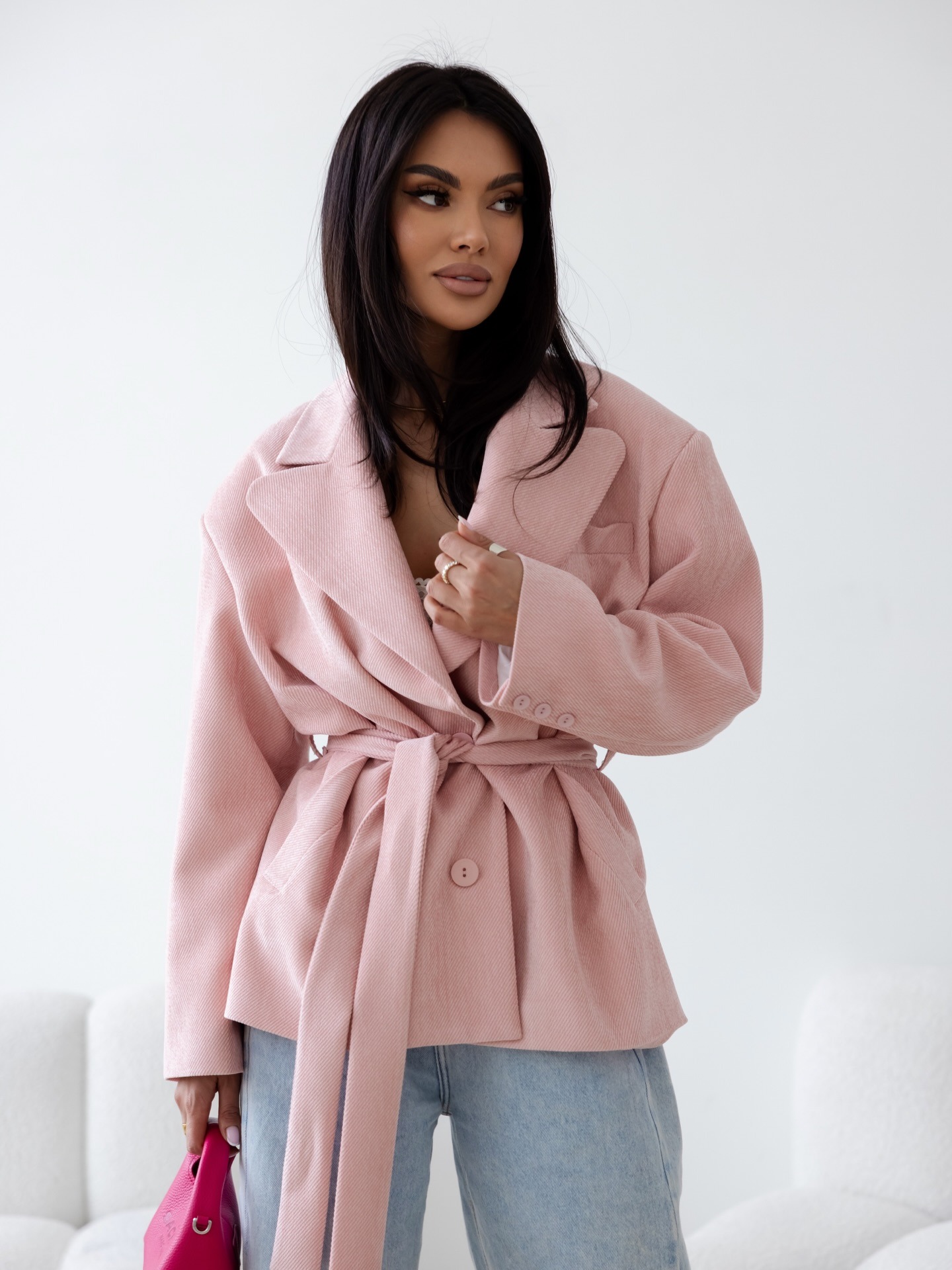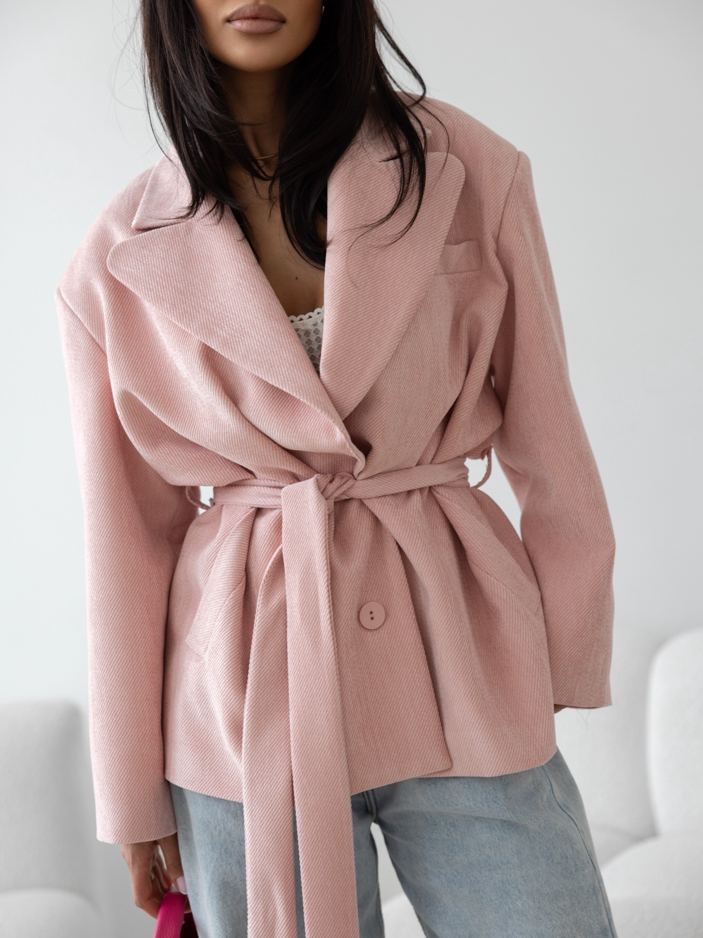 Kurtka w grubszej dzianinie o oversize’owym kroju z paskiem w talii.