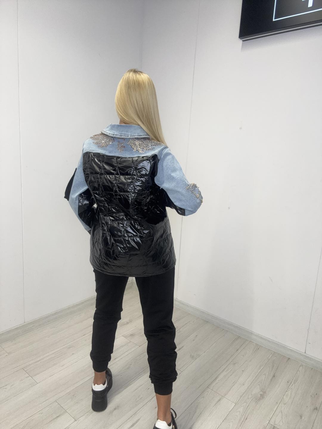 Kurtka Paparazzi Fashion – połączenie jeansu z lakierowaną czernią, zapinana na guziki z ozdobnymi detalami. Modny, kontrastowy fason idealny do codziennych i casualowych stylizacji. W zestawie klasyczne spodnie dresowe …