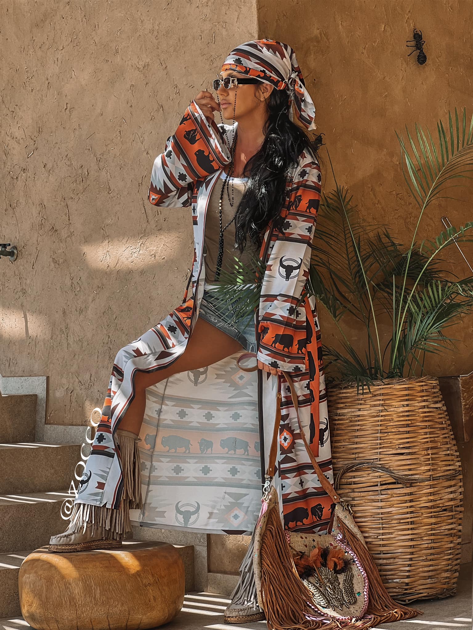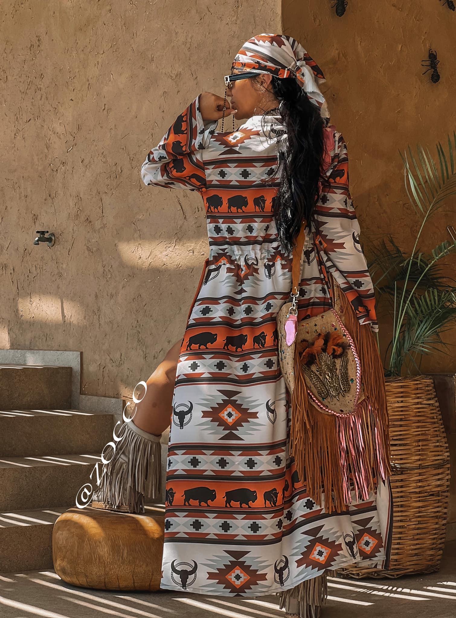 Maxi tunika Boho z regulacją w pasie Zocco 2995/Z
