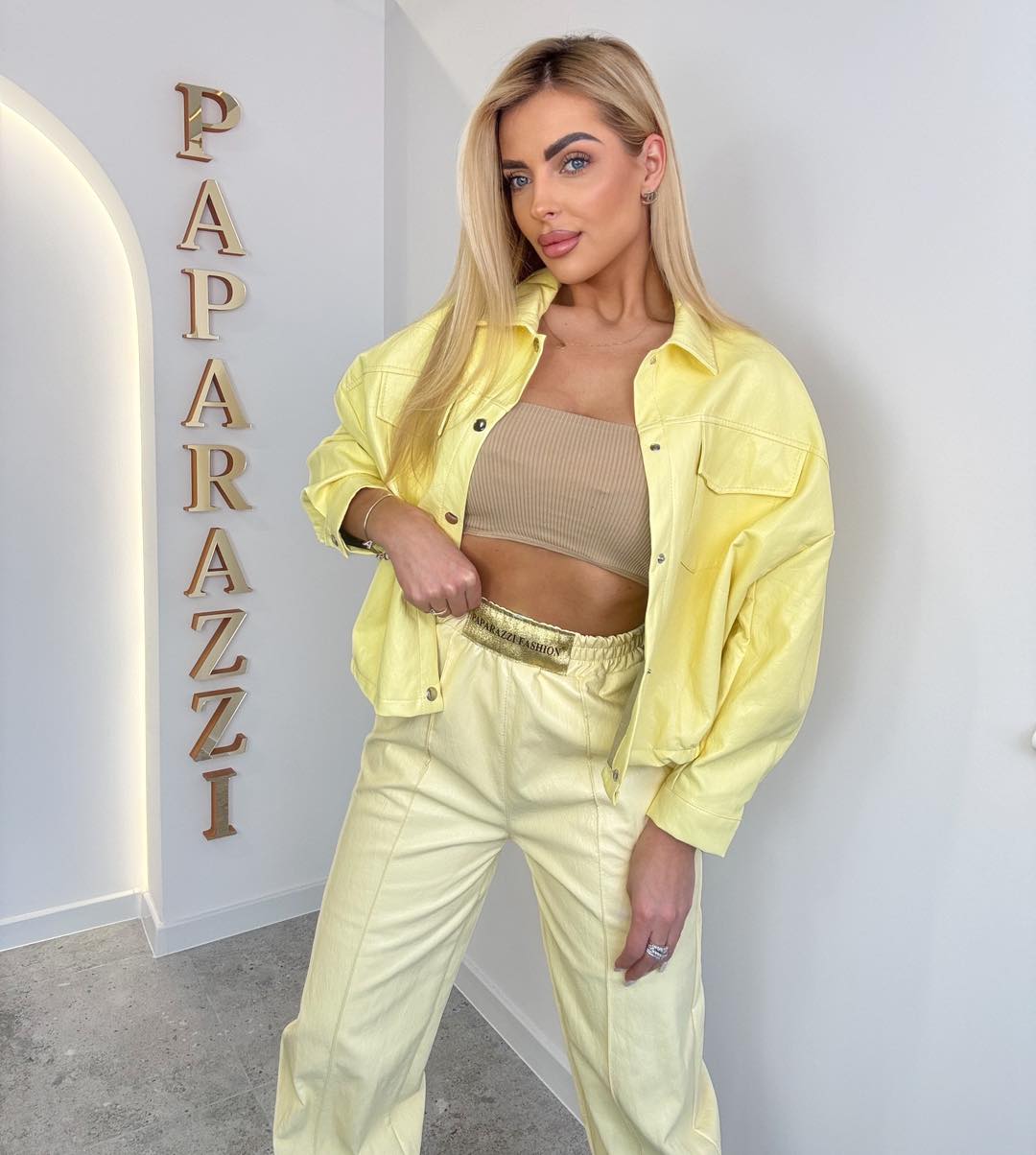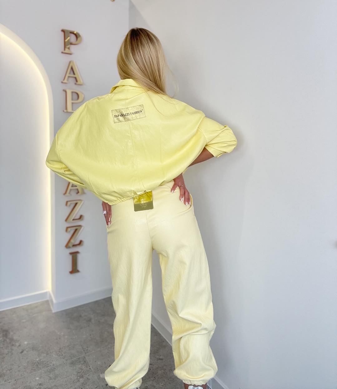 Spodnie z ekoskóry na szerokiej gumie w pasie. Rozmiar: Pas:35-50x2 Biodra:52-55x2 Długość:99cm