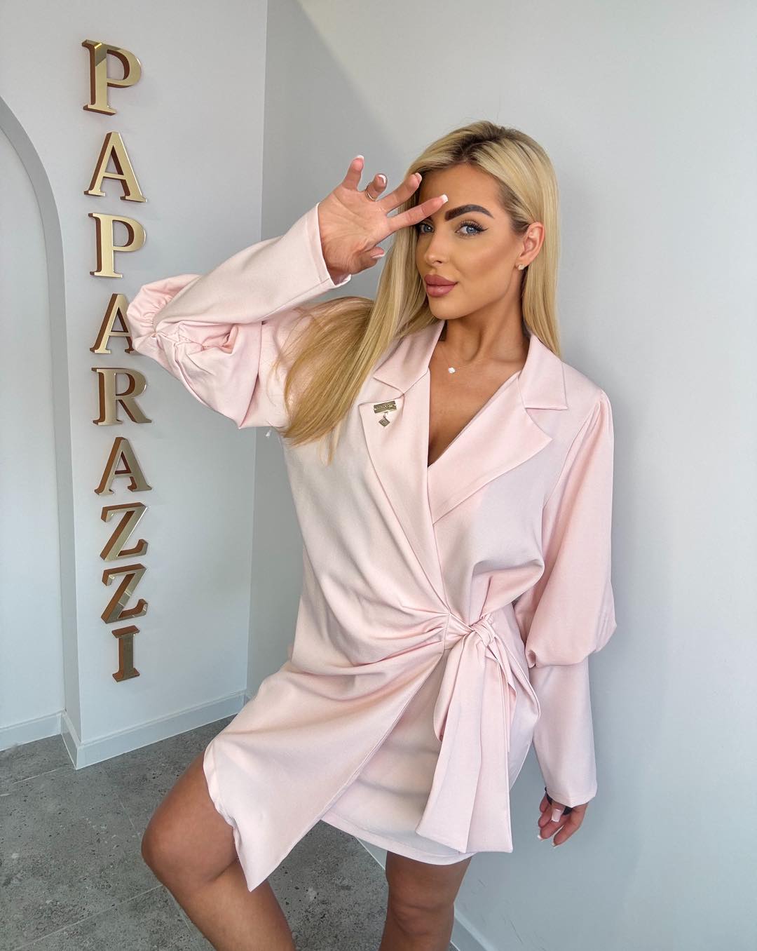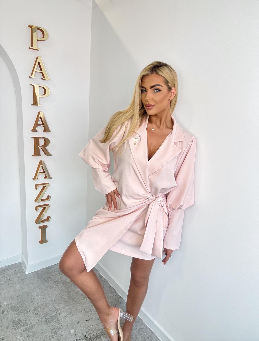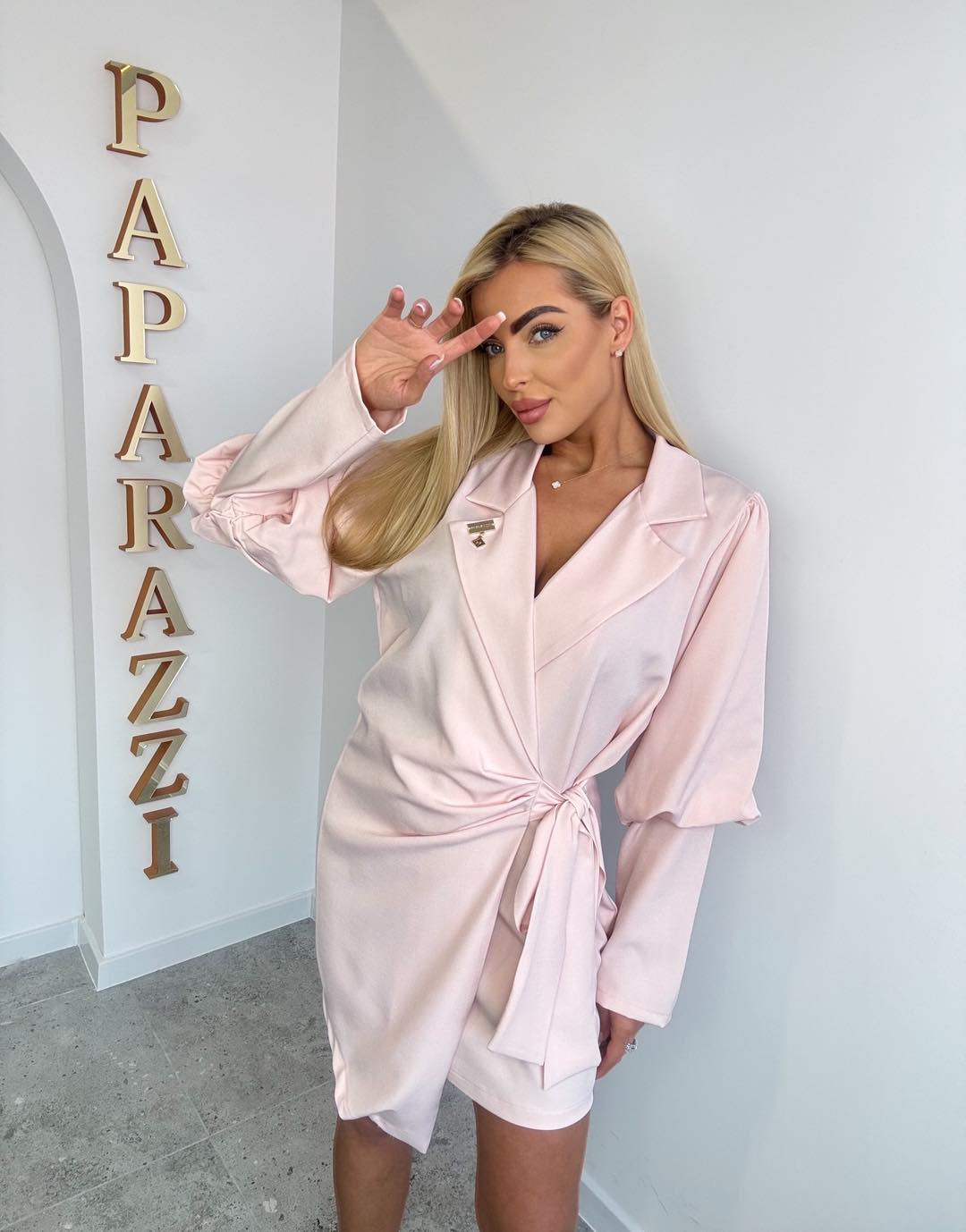 Elegancka kopertowa sukienka, zawiązywana na paski ze zwężonymi rękawkami od wysokości łokcia. Rozmiar: Biust:62 x2 Pas: 55x2 Biodra:62x2 Długość:86cm