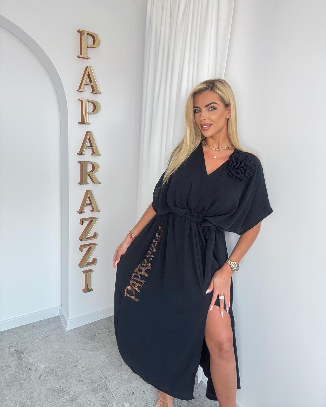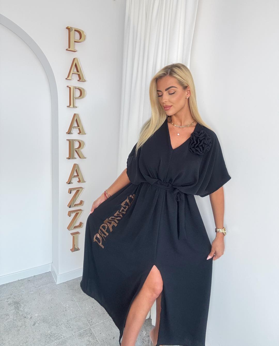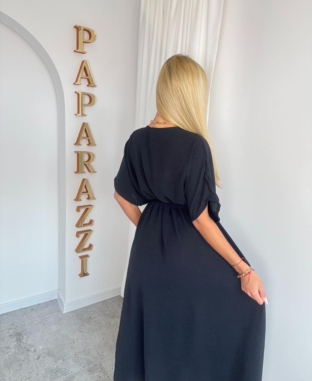 Elegancka, kobieca sukienka o ponadczasowym kroju, idealna na wyjątkowe okazje oraz stylowe wyjścia. Model wykonany z lekkiego, zwiewnego materiału, który pięknie układa się w ruchu i zapewnia komfort noszenia.