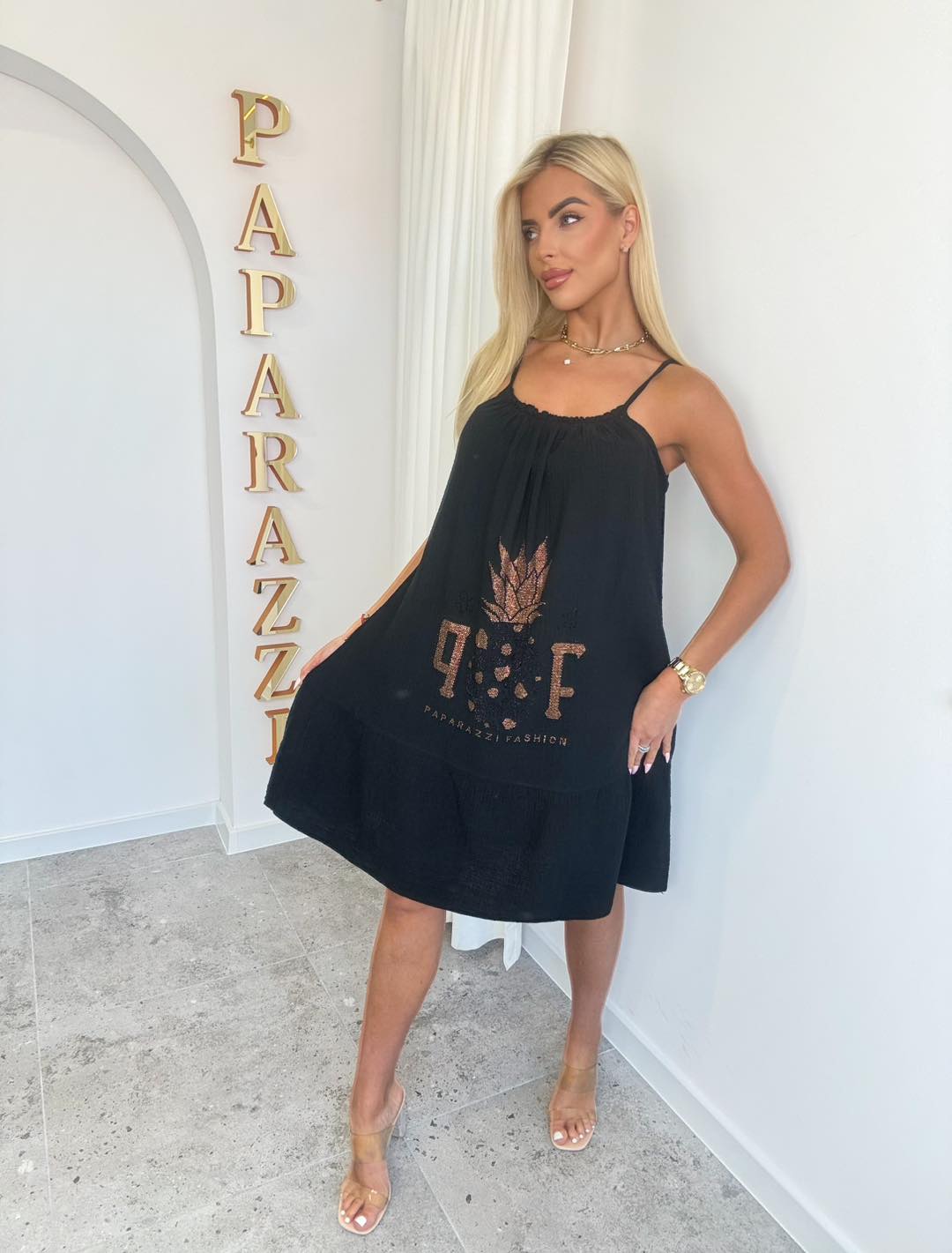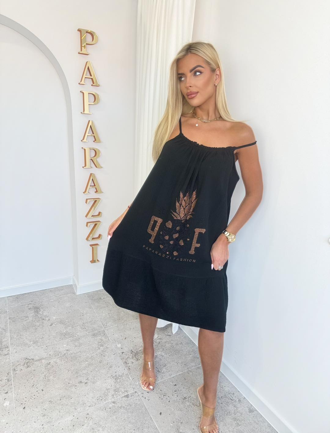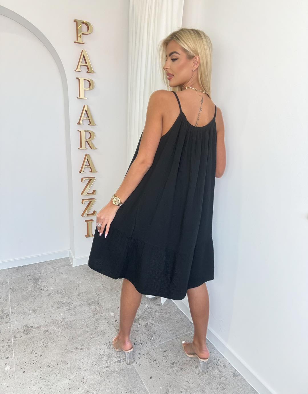 Zwiewna, letnia sukienka o luźnym kroju, która zapewnia maksymalny komfort i swobodę noszenia. Model na cienkich ramiączkach z delikatnym marszczeniem przy dekolcie pięknie układa się na sylwetce i subtelnie podkreśla ramiona.