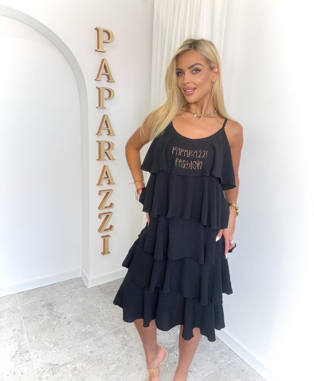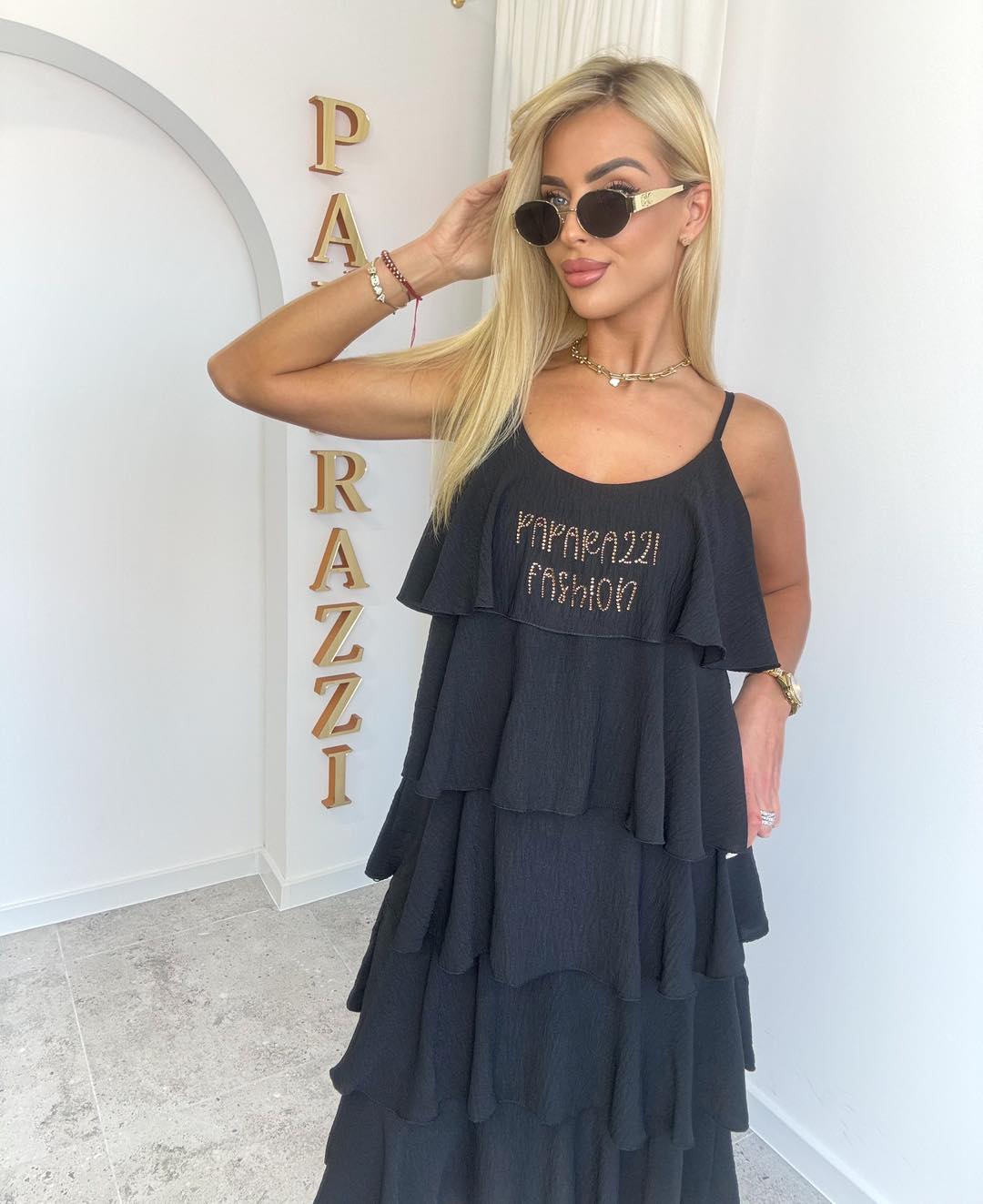 Lekka, kobieca sukienka o wyjątkowo romantycznym charakterze. Model na cienkich ramiączkach z efektownymi, kaskadowymi falbanami, które pięknie układają się w ruchu i dodają sylwetce lekkości. Delikatny, zwiewny materiał sprawia, że sukienka jest idealna na ciepłe dni – zarówno na co dzień, jak i na specjalne okazje.