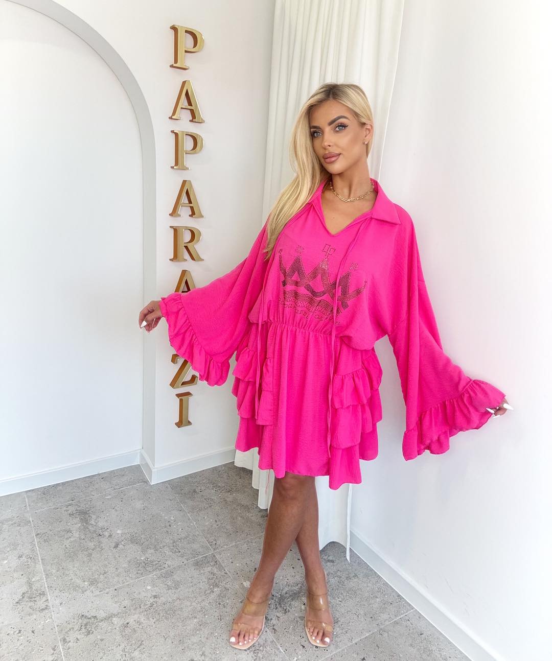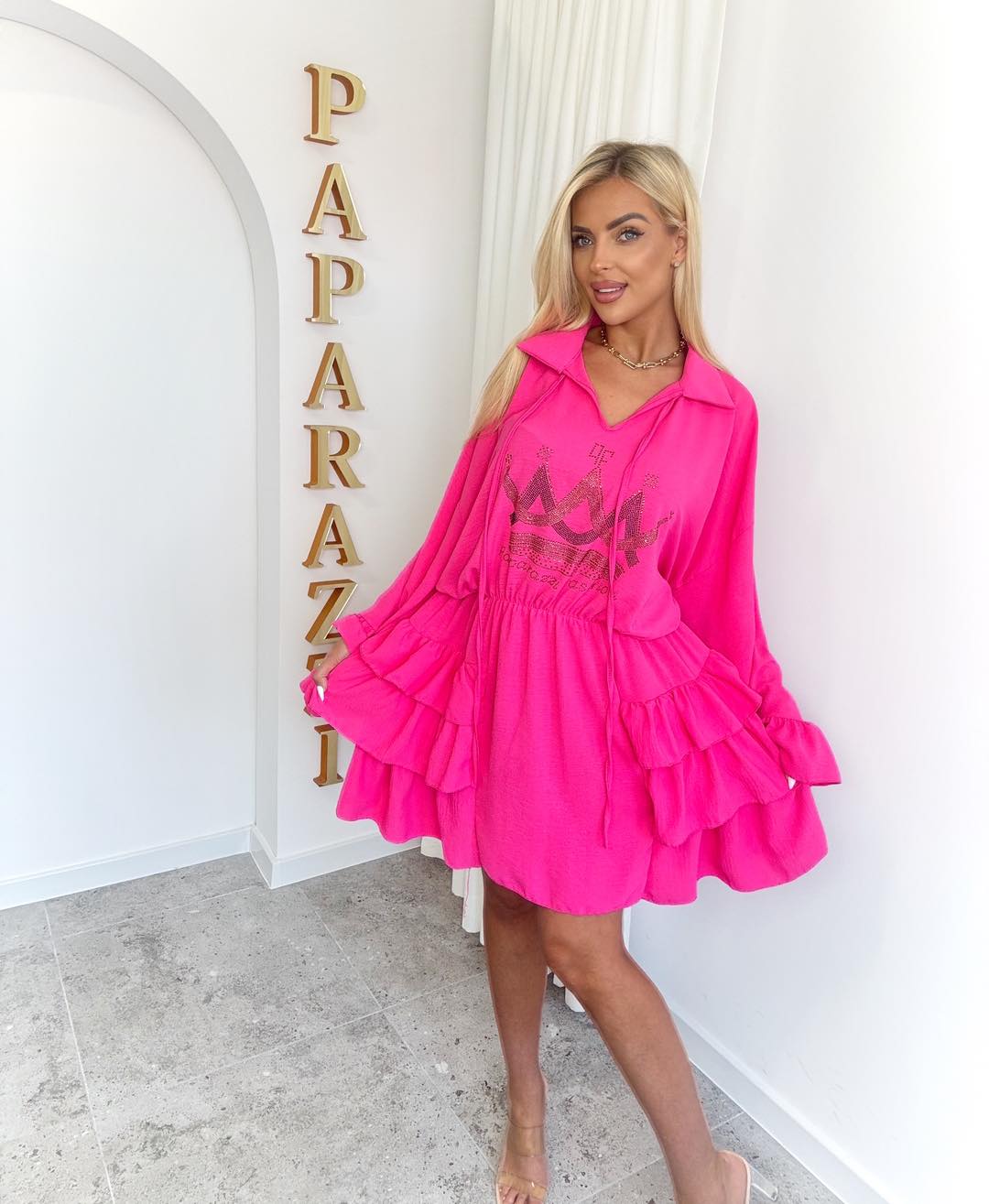 Lekka, kobieca sukienka o wyjątkowo romantycznym charakterze. Model na cienkich ramiączkach z efektownymi, kaskadowymi falbanami, które pięknie układają się w ruchu i dodają sylwetce lekkości. Delikatny, zwiewny materiał sprawia, że sukienka jest idealna na ciepłe dni – zarówno na co dzień, jak i na specjalne okazje.