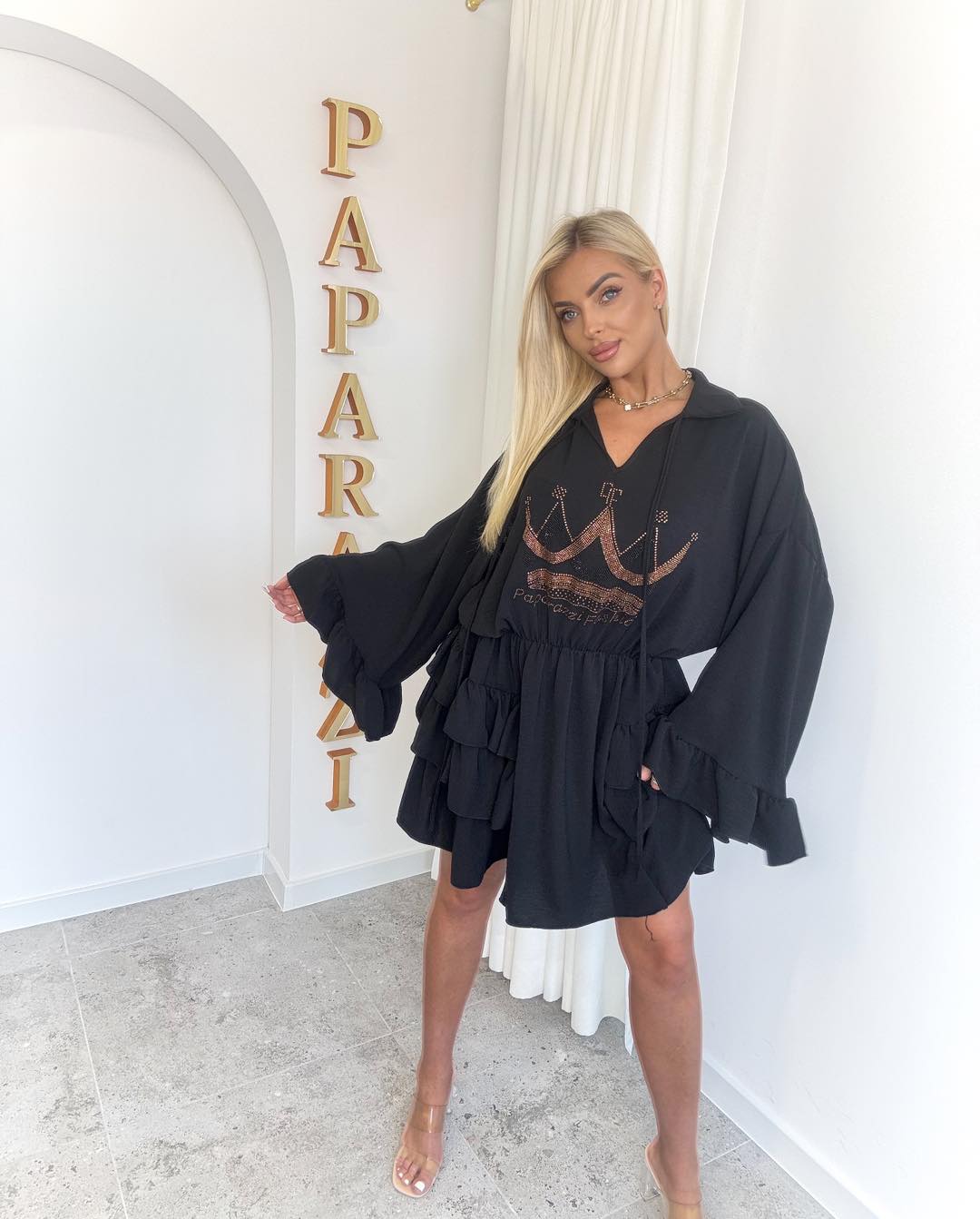 Lekka, kobieca sukienka o wyjątkowo romantycznym charakterze. Model na cienkich ramiączkach z efektownymi, kaskadowymi falbanami, które pięknie układają się w ruchu i dodają sylwetce lekkości. Delikatny, zwiewny materiał sprawia, że sukienka jest idealna na ciepłe dni – zarówno na co dzień, jak i na specjalne okazje.